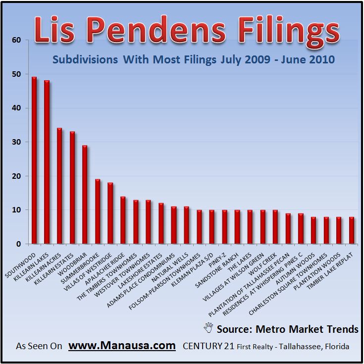 For those of you new to the Tallahassee Real Estate Blog, we report both lis pendens filings (the beginning of the foreclosure process) as well as foreclosure sales, in order to see how many distressed properties actually make it to auction on the court house steps.