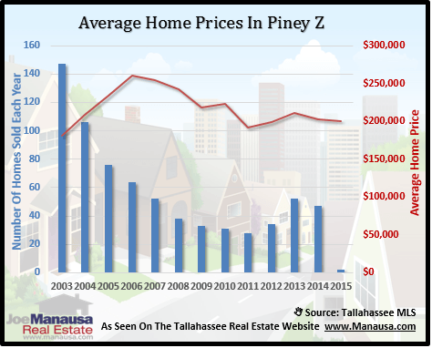 If you recall from our last Piney Z Home Sales Report, this popular NE Tallahassee neighborhood has the unfortunate distinction of owning the record for the most consecutive declining years in home sales.