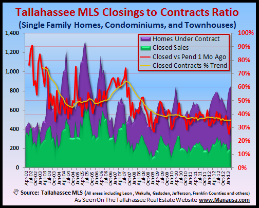 We monitor the trend of home sales recorded to real estate contracts written in the Tallahassee MLS, and the ratio of these two measurements is at its lowest level in more than 11 years. If our records went back further, I suspect the level would be at an all-time low.