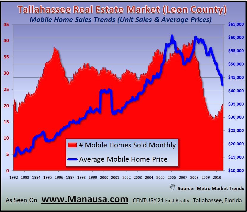 One of the indicators that I like to monitor for future movements in land valuations is actually the sales of mobile homes. These are mobile homes, on a lot, and historically they sell for very near to the average vacant lot price.