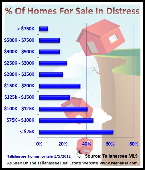 For example, take a look at the real estate graph on the right. This is a picture of your competition. If you have a home for sale in Tallahassee that is worth less than $75,000, you must understand that 2/3rds of the properties that you are competing against are owned by people or organizations that will sell them at any cost.