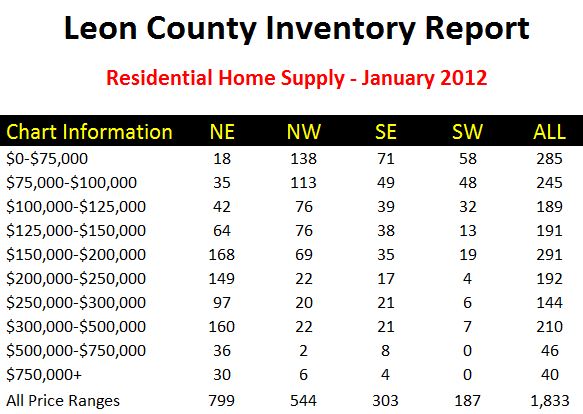One way to interpret this data would be to say that while 97 homes are on the market in Northeast Tallahassee (priced between $250,000 and $300,000), only 10 are going to sell. Common sense would have us believe that the ten best values are the most likely to sell in the next 30 days.