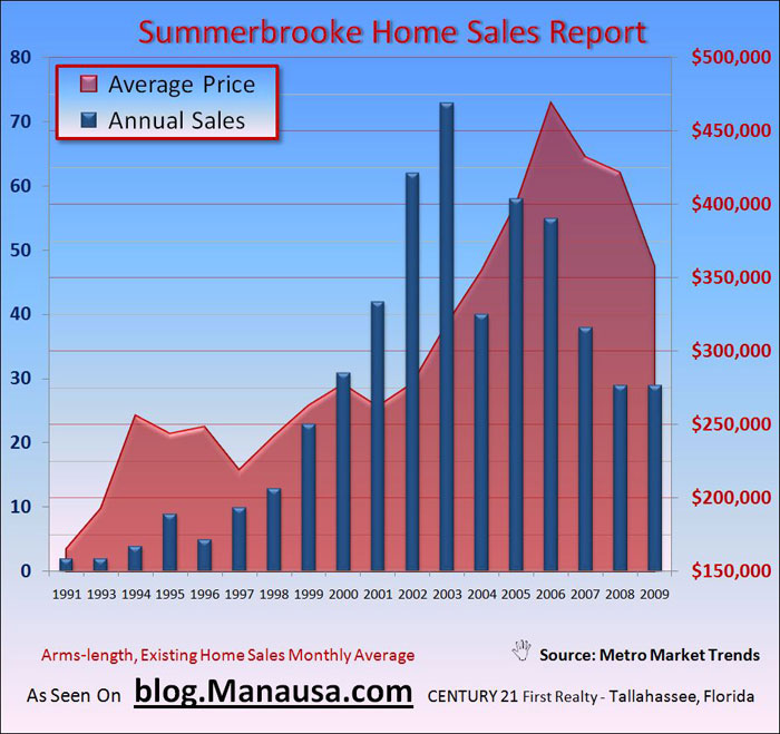 Summerbrooke home sales are “fighting the fight” that we are seeing in most Tallahassee neighborhoods. Home prices are still dropping in Summerbrooke, but monthly sales are on the rise, which is a major step in moving the market towards a balance between supply and demand.