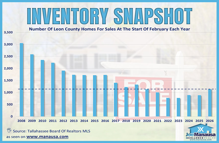 Although inventory has increased recently, it remains well below long-term norms. Population growth, household formation, and limited new construction continue to limit how quickly supply can expand. For homeowners, this means that while buyers may have more options than they did a few years ago, true oversupply is not present in the Tallahassee market.