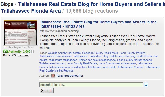 Tallahassee Real Estate Blog Rocks Technorati Rankings