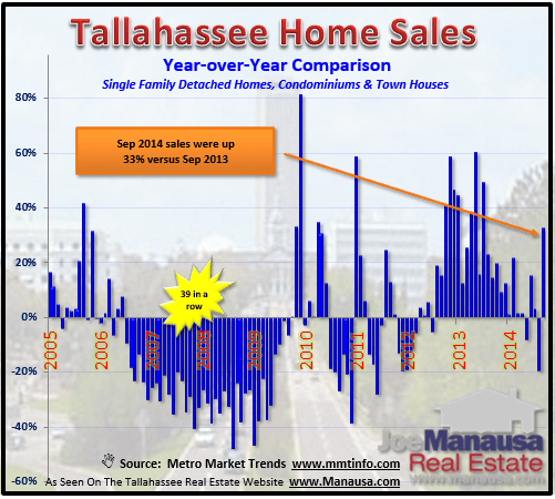 Moreover, every month for 9 months our market has moved higher than it had been in the prior year. In fact, 12 of the past 13 months have shown gains in year over year home sales in Tallahassee.
